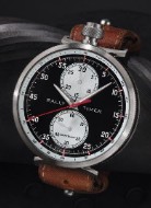 表盘“十二点钟”位置的30分钟计时小表盘,与“六点钟”位置的小秒针表盘纵向对齐,令人不禁回想起美耐华表厂的经典之作——Rally Timer计时码表。表盘中央的红色计时秒针,沿着表圈外缘的测速刻度轻盈跳动,可用于测算固定距离内的速度。