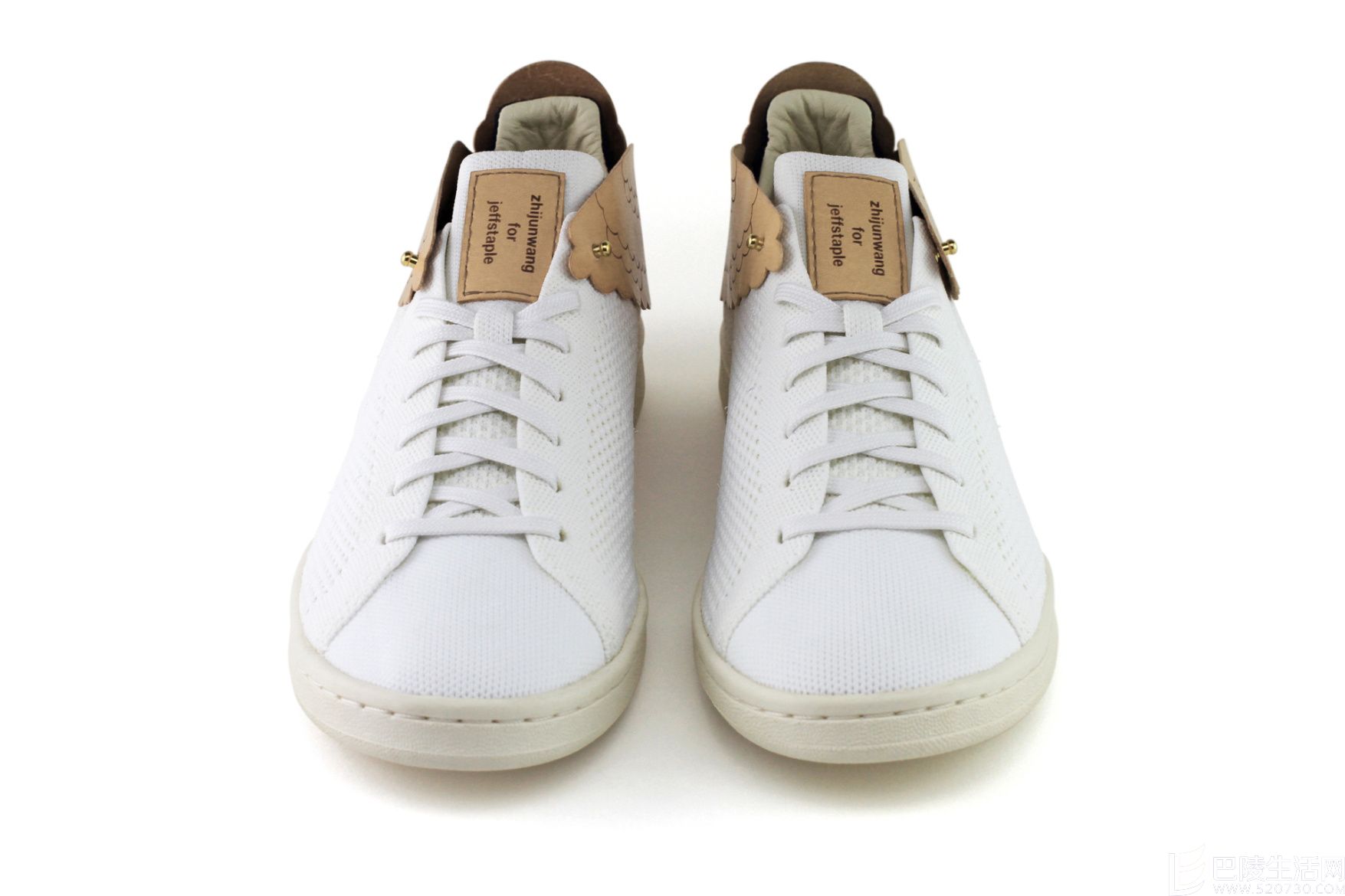 与纽约街头品牌 Staple 主理人 jeffstaple 亦师亦友的中国球鞋客制设计师 Zhijun Wang,日前特别为其打造这双客制版本 Stan Smith Primeknit「jeffstaple」。jeffstaple 于早前已经在 Instagram 帐户公开使用由 Zhijun Wang 打造的球鞋面罩,而今回他为 jeffstaple 打造的客制版球鞋,将 Staple 白鸽标志设计成白鸽展翅的图案,并以激光技术雕刻于意大利植鞣皮革上。再于鞋带孔顶端加入黄铜圆钮作固定白鸽之用。大底外侧后跟位置原有的 adidas 标志,亦以皮革激光技术刻上 jeffstaple 以凸显其专属性质。而此客制版本 Stan Smith Primeknit「jeffstaple」亦已送到 jeffstaple 的手上。