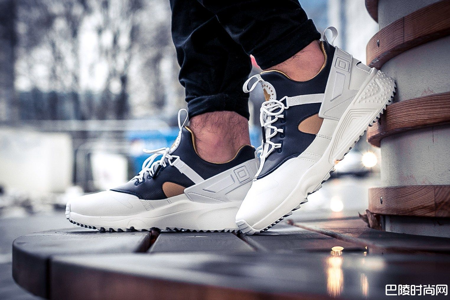 Nike 革新鞋款 Air Huarache Utility 今季新增了一款全新配色。除了保留元年鞋身设计之外,新鞋采用了「Premium White」皮革制作鞋身,搭配「Midnight Navy」和「Gold」细节装点鞋面,同时搭载户外机能感满载的 Nike Air 中底呈现,让鞋款能够适应冬季严酷天气。据悉,这双鞋已可经由 Solekitchen 等 Nike Sportswear 指定零售商购得,定价为 $155 美元。