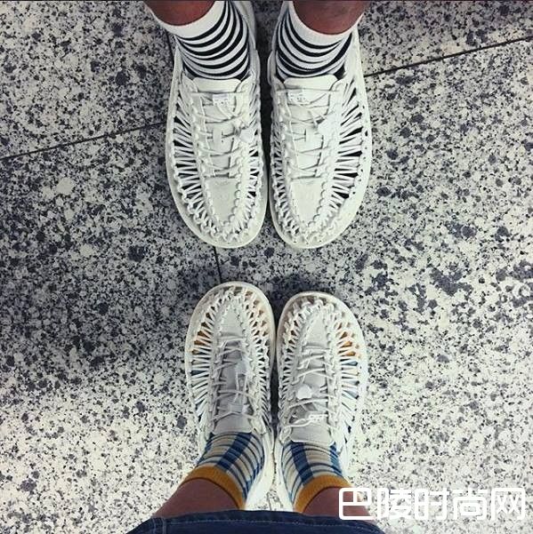 New Balance的织带凉鞋SD750系列最受欢迎,今年推出了7种颜色可以选择,另外还有迷彩的呢!韩妞几乎人脚一双,女生不穿袜子时可以露出脚趾上可爱的指甲油颜色,穿上袜子做搭配也很有个性。
