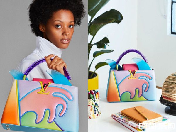 Capucines是2013年推出的包款,以路易威登于1854年在巴黎街道Rue des Capucines开设的第一家店为名,接着每一季都有新色,成为新经典。这次与当代艺术家的合作,将在6月25日开卖,每款全球限量300只、附有编号,各296,000元。
