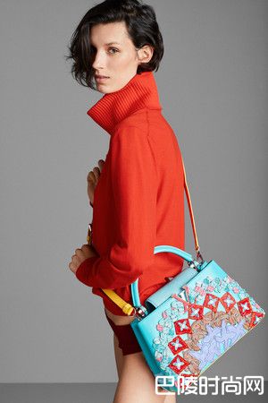 美国艺术家Sam Falls擅于创作大型画作,设计Capucines包,像是把画作缩小,用提花编织、印刷及刺绣呈现,LV标志则镶嵌了珍珠母贝,显得典雅贵气。