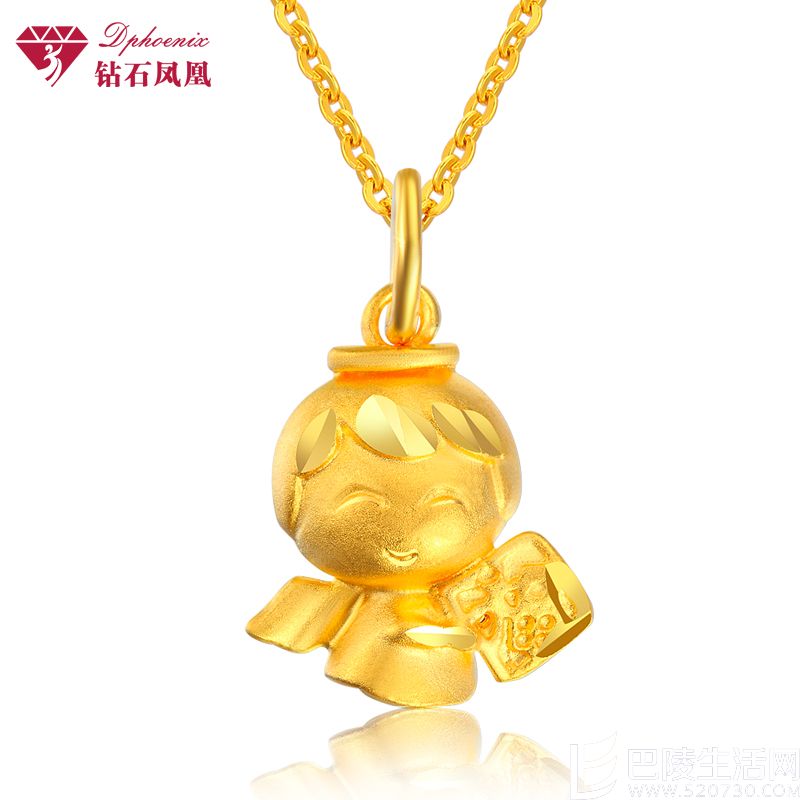 钻石凤凰 999千足金项坠 黄金女吊坠福星宝宝吊坠 出售价格:577 原价格:1399 月销量:2 运费:0 所在地:广东 深圳 库存数量:6 收藏数:11 货号: AU0101|品牌: Dphoenix/钻石凤凰|售后服务: 复检后再付款 店铺保修|镶嵌材质: 未镶嵌素金|规格: 约1.85g 约2.10g 约2.32g 约2.37 约2.12g 约2.01g|图案/形状: 宝宝/天使|重量: 财富宝宝 如意宝宝 抱鱼宝宝 万福宝宝 智慧宝宝 天使宝宝|贵金属成色: 千足金|款式: 吊坠|用途: 送礼|增值服务: 现货24小时内发货|鉴定证书: NGSTC证书|适用对象: 女性|价格类型: 计价 是否商城:是 是否支持七天退换货:否 是否有正品保障:是 是否支持信用卡付款:是钻石凤凰黄金吊坠专区
