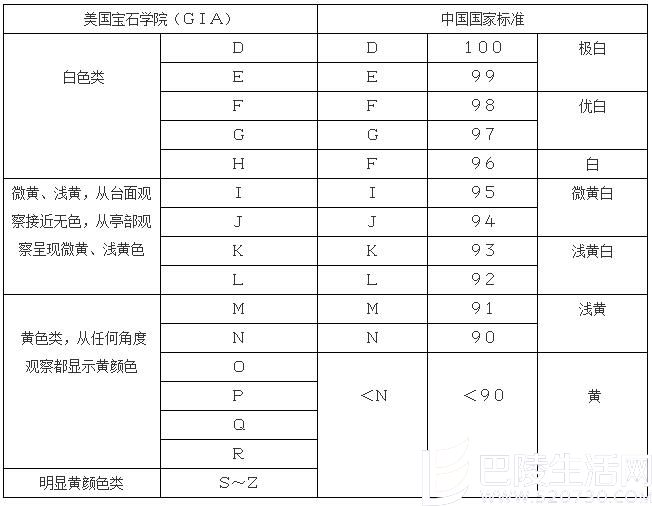 钻石颜色级别表