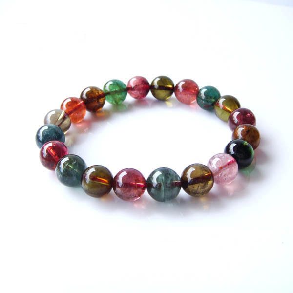 彩色碧玺可以说是在所有水晶石中颜色最绚丽多彩的,因碧玺谐音类似“辟邪”,很多人在碧玺美丽的外表外又加了一个辟邪的分,因此佩戴彩色碧玺手链的人也越来越多。