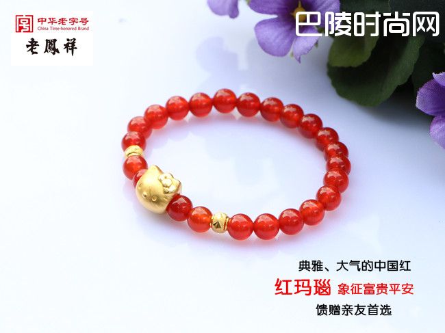 老凤祥本命年黄金手链24K千足金手镯转运珠女款红玛瑙