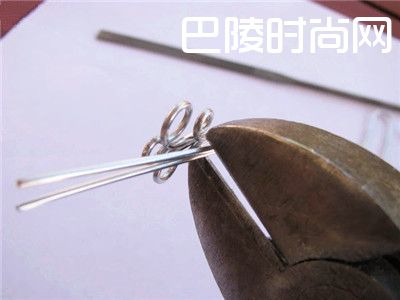 3、然后用手把两边线往左右方向卷。接着我们在用圆锥钳的最里面部位固定好卷好的别针。