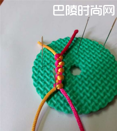 7、以上是双色缠绕一直编的蛇结手链编法,还有一种两种颜色分开编在一个手链上的,如图,大家可以学习下,也是非常简单的!