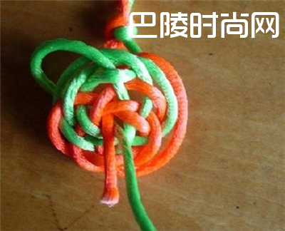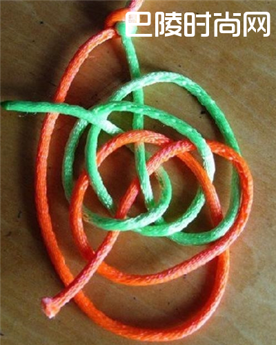 3、用其中的一条线跟着六耳双钱结的走线再走一次。