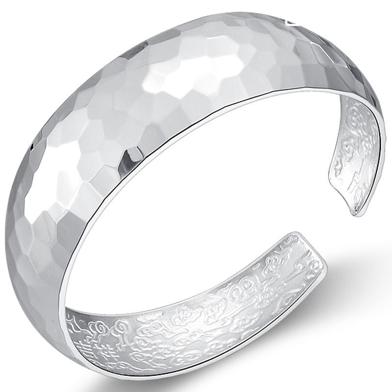 银手镯由于是圈状物并整体成形,银的材质比较软而且中间空间较大,戴在手上要是不小心,重力挤压了银手镯是很容易产生变形。