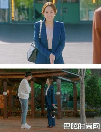 除了一线精品之外,朴敏英在该剧也力挺南韩设计师品牌,除了彩色西装常常穿avou avou之外,在包款的选择上也多次使用南韩品牌COURONNE。其中一款黑色上班包,她搭配珍珠背带让包款更抢眼,在蓝色西装的衬托下,平衡硬派阳刚气息与温柔女人味,是一款让人过目难忘的包款。