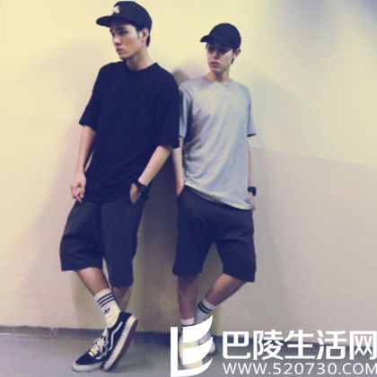第二张图片是黄伟晋和其团员陈向熙(Teddy)的微博合照,陈向熙身形较纤瘦,身高官方数据为184cm,在此图中因为站姿、拍摄角度和鞋底高度的问题较黄伟晋低半个头。两人眼神方向不一但形成视线延长交叉点,别有一番意味,此外又都是运动穿搭,甚是相配,同是黑帽子、棕色中裤,不同颜色恰巧都是中性色系,看起来很和谐,充分显示出两个大男孩的阳光气质。