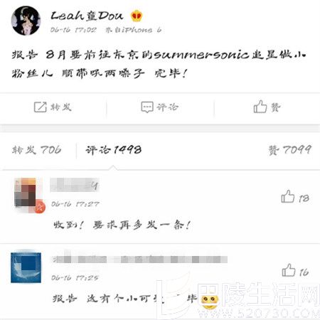 窦靖童微博自5月28日更新后,到6月16日就整整有十八天没更新动态了。6月16日,窦靖童终于更新了自己的动态,给我们发来了一个新的“报告”。在微博中,她讲道:“报告 8月要前往东京的summersonic追星做小粉丝儿 顺带吼两嗓子 完毕!”看完窦靖童的报告后,小编感觉得她还真的是萌萌哒!小编被她成功萌上了!