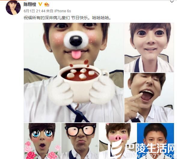 对于00后“无知”的少年来说,我们这群8090早已老去,可他们并不知道我们童心未泯,我们仍拥有一颗年轻的心。六一儿童节,我们过得比他们还疯狂,我们萌得比他们还幼稚,那一天,我们这群超龄儿童好像都得了“深井病”。明星陈翔竟也如此,6月1日当天,陈翔在微博晒出一副组图,不是扮可爱小狗,就是扮粉嫩小猪;不是深邃大眼睛,就是夸张大嘴巴。着实过足了儿童节的瘾!