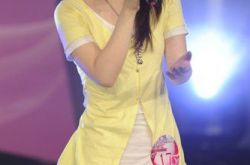 下面这一张呢,是陈雅丽出息《泡沫之夏》活动时的照片,据雅丽自己说她是第一次在影片里演坏人,不过从她出席的《泡沫之夏》的电影宣传活动现场照片来看,陈雅丽可一点也不坏哦,她穿着一件无袖亚麻色连衣长裙,显得俏皮乖巧。照片里陈雅丽一手遮挡光线,微微嘟着嘴唇对着台下的粉丝笑,显得特别甜美清纯,一点不输同台的黄灿灿。
