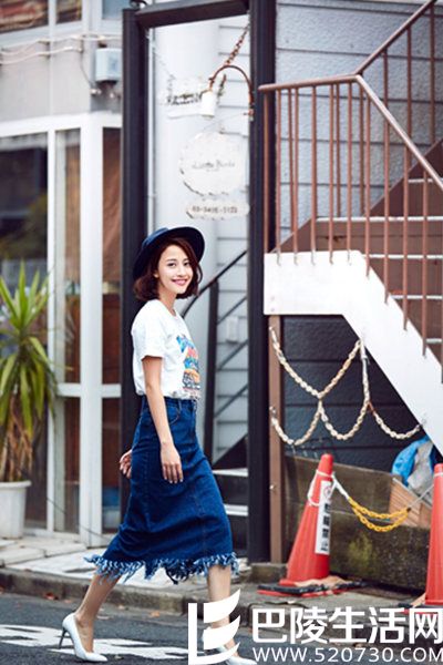 这一张也是陈雅丽新写真里的照片,陈雅丽化身时尚女郎行走在日本街头,LOB头搭配蓝色礼貌,对着镜头一抹清新的笑,夏天的热气仿佛全部走掉,只有清爽气息。白Tee搭配流苏牛仔裙,配上一双质感十足的银白高跟鞋,模特出身的陈雅丽立马化身街拍女神,街头就是秀场,我是街头的焦点。