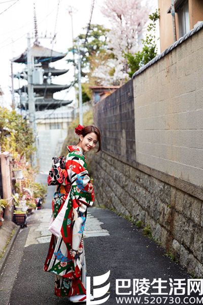 这一张是陈雅丽很特别的一张写真照,她穿着一整套日本的传统和服站在日本的一条巷弄里,和服颜色绚烂艳丽,却衬得雅丽的脸庞愈发精致,她将一头秀发束至脑后,是整个人看起来气色健康有活力,那朵头上戴的红花绝对是点睛之笔,是整张照片多了一抹少女的娇羞。空无一人的小巷,背后的古塔,院墙里的樱花,春日阳光里一位和服少女漫步悠游在此,寂静,惊艳。