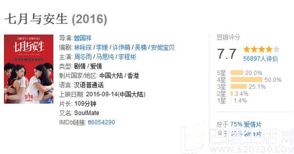 但是众所皆知,《七月与安生》在国内电影市场大盘整体票房大幅下跌的情况下,一反近年青春题材影片颓势,凭借过硬的质量、在各大票网站评分第一的傲人口碑及冠军上座率,成功逆袭。豆瓣网评分更稳定7.7分,成为今年评分最高的国产商业电影。