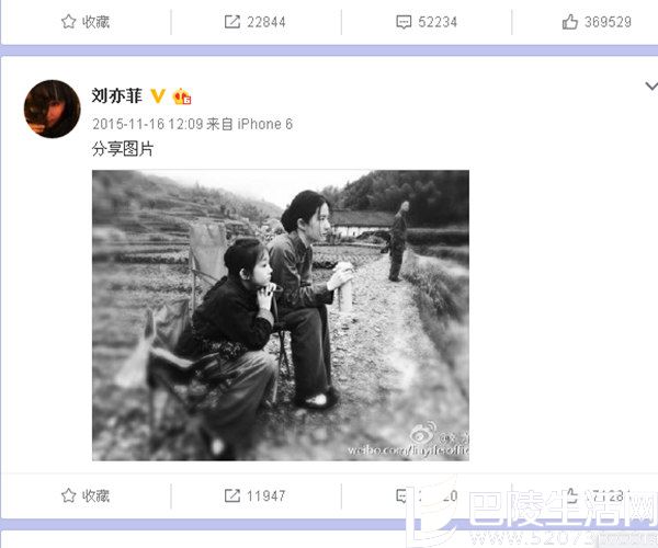 11月16日,神仙姐姐刘亦菲在微博晒出自己的村姑黑白照。照片中,刘亦菲挽着头发,衣着朴素,与一位小姑娘并排坐在乡间小路上,两人都望向远方,相当接地气。原来,刘亦菲晒出的照片是自己在电影《营救飞虎队》中的剧照。《营救飞虎队》讲述了二战期间,浙江军民努力营救美国飞行员的故事,刘亦菲在剧中扮演一位寡妇,独自抚养着女儿。
