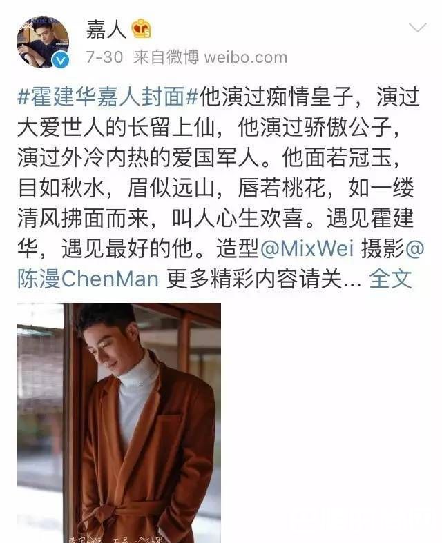 现在两人的封面分别出来了,霍建华上的是《嘉人》十一月刊封面。而林心如是“最美一刊”的封面人物。