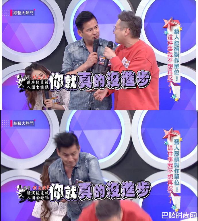 丫头跳出来想缓场问说:他是笑说当年也同时是转台王的那年啦!然而绿茶回应:不是,我在想说他们会这样讲是因为你就是真的没进步嘛!马国贤气得直接直接巴下去,站回台上继续骂:没进步会入围?你现在是觉得金钟奖评审都是瞎子是不是?