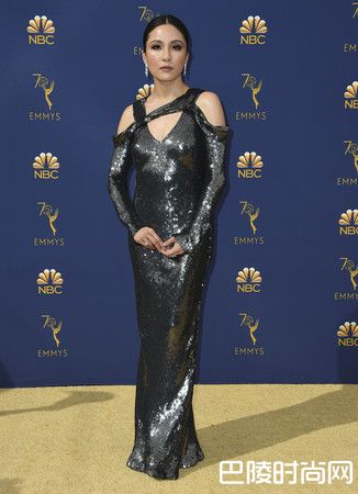 有人认得出来是谁吗?这位是最近因为《疯狂亚洲富豪》再度翻红的女主角吴恬敏,这次参加艾美奖担任颁奖人,先别说亮银色的特别设计,咦!!!肚子真的很明显,不知道还以为真的怀孕了呢。