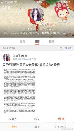 何蓝逗经纪人发长文澄清。