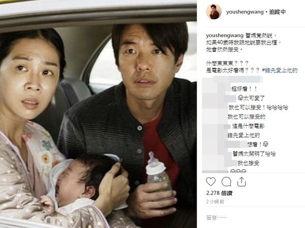宥胜4日晚间在社群网站上自爆,突然听到:蕾妈竟然说,如果40岁时我跟她说要我出柜,她会欣然接受。让他大傻眼,直呼:什么东东?笑亏太太看完电影入戏太深。他这一贴文,让不少网友笑到歪,还有人开始无限想像,直说:蕾妈太开明了哈哈、不该跟老婆去看的、感觉蕾妈独自做了一场很深层的心理建设,还有人开玩笑:那39岁时跟蕾妈说要出柜,她应该就会犹豫了、虽然会伤心,只好接受XD也有人直说:不会吧!
