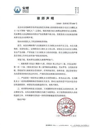 古力娜扎工作室指出,部分网友恶意散播不良言论,内含大量侮辱、诽谤词汇,已经使大众对当事人产生误解,也严重影响了古力娜扎的正常生活,作为公众人物,古力娜扎女士一直承担着网络舆论带来的巨大压力,但对言论的容忍不代表对自身合法权益的放弃,若是网路霸凌的网友再不删除内容,将会采取进一步的法律措施。