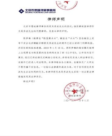吴秀波方面发声明否认指控。