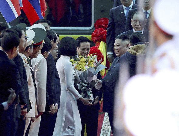 美国总统川普与北韩领导人金正恩27、28日于越南河内举办川金二会,金正恩于越南当地时间26日上午8时搭乘专列抵达同登车站,而在他下车后,马上获得当地官员与民众的热烈欢迎,在直播画面中,一名身穿白色越南国服,走上前替金正恩献花的年轻女子更因此受到当地媒体热烈报导。