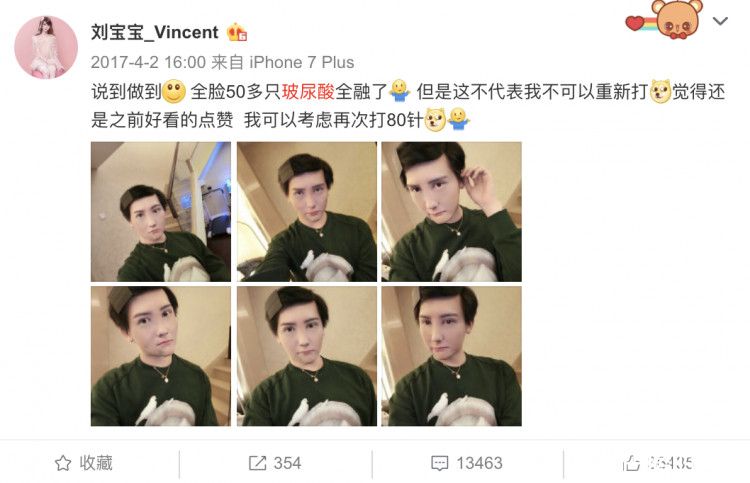 也因为这是蛇精男罕见的零修图照片,在网路上引起热烈讨论,太膨胀了、居然能在现实中认出他,佩服、现在信他脸上塞了十几支玻尿酸了。其实,蛇精男在2017年就曾透露,自己脸上打了50多支玻尿酸,但全都溶解了,之后还想挑战打80支,对整型相当上瘾。