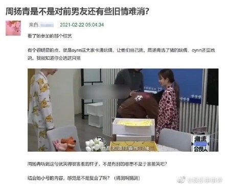而周扬青21日在微博小号发文:希望今天做出的决定,在未来永不后悔。有网友询问:这个决定什么时候能告诉我们?她则表示:过两个月吧!更有许多网友猜测她恋爱,同一天,罗志祥也在IG发文表示:下定决定要做一件事,就要努力去做。虽然图片配上体重计,但两人发文的时间点和内容仍引起不少揣测,就有网友推测周扬青和罗志祥复合。