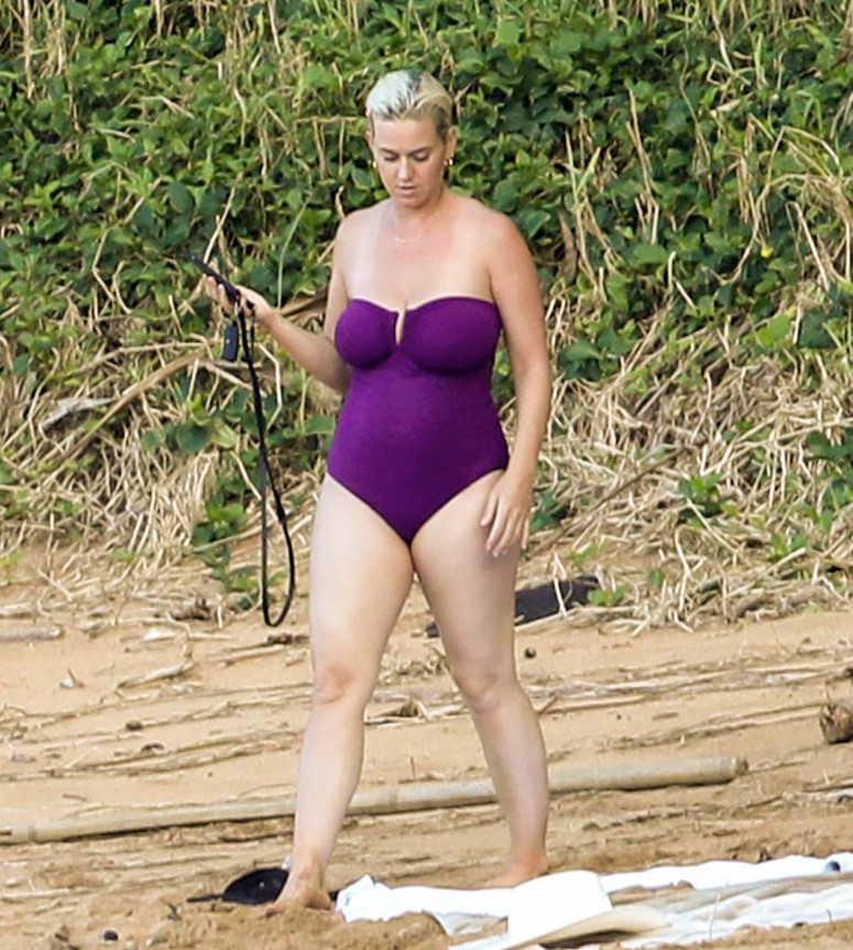 美国流行天后凯蒂佩芮(Katy Perry)去年替未婚夫魔戒男神奥兰多布鲁(Orlando Bloom)生下一女黛西(Daisy Dove Bloom),产后不到四个月积极瘦身,也在年尾复出歌坛参与大型活动表演!近日媒体就捕捉到凯蒂佩芮与奥兰多现身夏威夷海滩度假,一身紫色连身比基尼让天后身形全都露,微凸的小腹和壮硕的大腿一览无遗,就被不少网友调侃:大妈现形!。