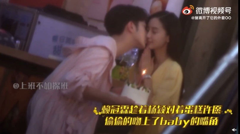 近日,就有媒体在路边捕捉到,正在拍摄《爱情应该有的样子》的赖冠霖与Angelababy,只见赖冠霖穿着清新的白色外套,女方则是搭配了一套黄色洋装,男方端着蛋糕现身帮女方庆祝,趁着不注意时,赖冠霖低头嘴对嘴亲了Angelababy,后续两人也有多次亲吻的戏码。