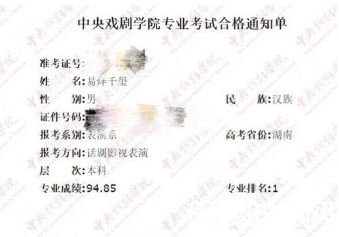 易烊千玺成绩出炉是什么情况?易烊千玺考虑多少分?第几名?北电、中戏、上戏几大电影院校是童星们高考的不二选择,前段时间是艺考日各大童星纷纷出动,今天中戏成绩出炉易烊千玺以94.85的成绩考取第一名!