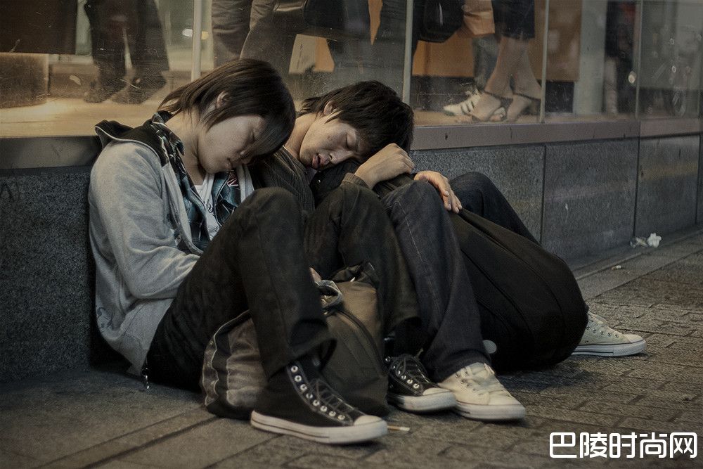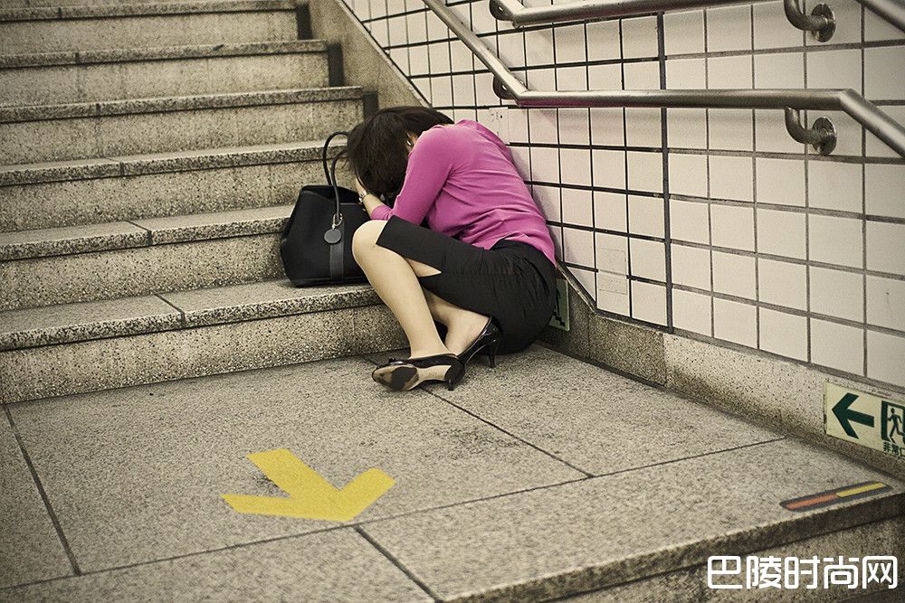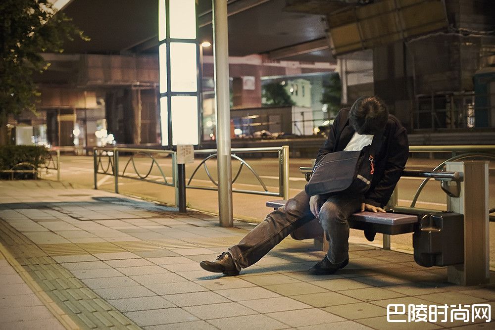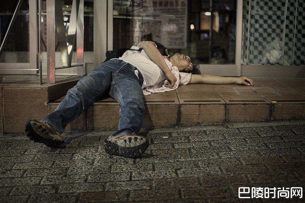 连穿着开衩窄裙的OL,也大胆地在路边睡着了…