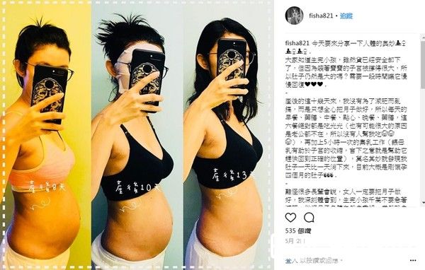 李芳瑜原本体型娇小纤细,在生产后也大方公开腹部的真实模样,虽然已经卸货,但产后过了10天的肚子还是像怀孕5个月一样,直到第13天才明显小了一号,她建议刚生完的妈妈们不要急着减肥,而是要全心把月子坐好,甚至一天6餐的月子餐吃好吃满,再加上5小时一次的集乳工作,肚子慢慢地就会越变越小。