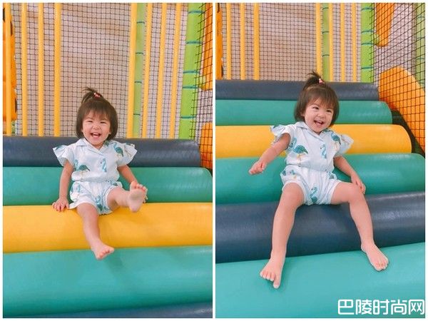 可以看到Bo妞顶着超萌冲天炮发型,穿上印有动物图案的浅蓝色连身短裤,站在游戏器材上、紧紧抓住栏杆,时而瘪嘴时而张嘴大笑,看起来非常活泼有朝气,也难怪贾静雯会说:陪她成长是我一种成就。格外引人注意的是,她的一双腿又长又直,即使光着脚丫也丝毫不影响比例,不敢相信是个3月才欢度1岁生日的孩子。