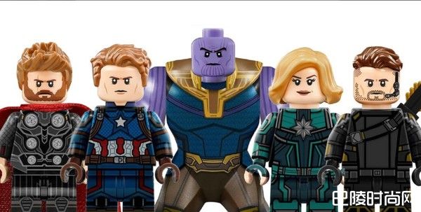 照片中,可以看到萨诺斯、绿色制服的惊奇队长、美国队长、雷神索尔的乐高玩具,而鹰眼则是留着胡子,打扮就像是漫画中浪人的模样,战袍主要为黑色、灰色和金色。