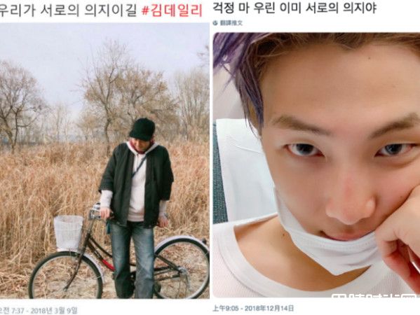 Jin的惊人发言,令台下观众震惊,成员一个个哭到情绪失控。特别的是,有粉丝发现,就恰好在活动开始前,RM于14日上午9点在推特发文:没事,我们已经是彼此的依偎了。比对过去的贴文,RM曾在今年3月9日贴文:希望我们成为彼此的依偎。9个月内的时间里,从不确定变成肯定句,也让粉丝放下心里一颗大石头。