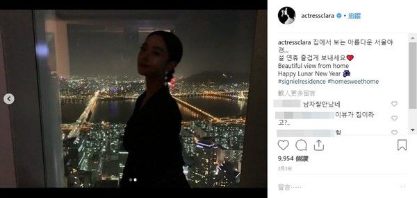 据报导,老公买下首尔江南的蚕室地标乐天世界塔中的高级豪宅SIGNIEL RESIDENCES当作小俩口的新婚房,买入时要价81亿2000万,以贷款8成5买下,共76坪,可俯瞰湖景,克拉拉也在IG晒过从家里看出去的夜景照,奢豪程度令人咋舌。