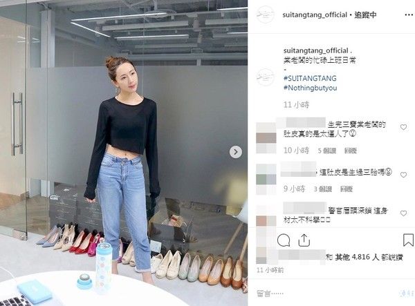 许多女性网友看了都极度羡慕,这是生过三宝的腰吗、肚皮真的是太逼人了、这身材太不科学、身材好像完全没生过那样。其实,隋棠在怀第2胎时胖了13KG,花了一年才瘦回来,之后维持靠饮食+运动,一周一定会挤出三天,每次1.5小时,且持之以恒从来没有松懈。靠着坚持才换得美丽身材。