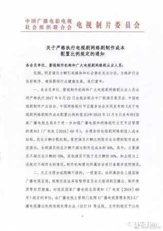 中国电视制片协会通知限薪令升级。