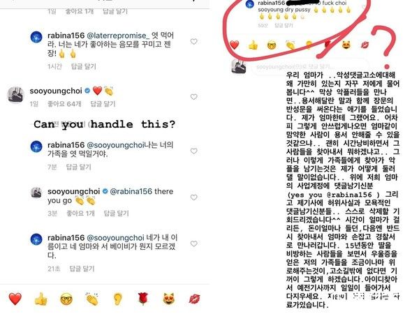 原本抱持着视而不见的秀英说,反正都是浪费时间,干嘛还要特别把人都找出来,然而这次真的忍无可忍,但像这样找到我家人然后留下恶意评论,我如何能睁一只眼闭一只眼!