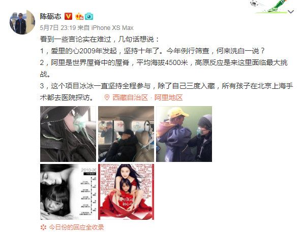麦特文化CEO陈励志发文后引来大批网友留言攻击,这之后他又在微博发文表示:「看到一些言论实在难过,几句话想说。」并列出三点想替范冰冰澄清并无洗白一说。文中可以看到范冰冰这项公益爱里的心早从2009年就发起,今年刚好是此活动的10周年,更表示阿里这个地方平均海拔4,500米,是个挑战性及危险性都极高的地方,而范冰冰每次都亲自到场,为何外界还有洗白一说。