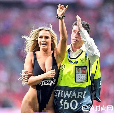 欧洲足球冠军联赛当地时间1日发生一起吸睛的闯入事件,一名穿着黑色Y字高衩泳衣的金发女观众跑进球场内,露出胸部和浑圆的屁股在场上奔跑,不久后即被保全人员带下场。不过这并非只是热情球迷的一般闯入事件,而是俄罗斯泳装模特儿沃兰斯姬(Kinsey Wolanski)为了帮男友的成人网站打广告,做出的疯狂举动;此举在数小时内为她增加了超过100万的粉丝人数,也让男友的成人网站流量爆冲。