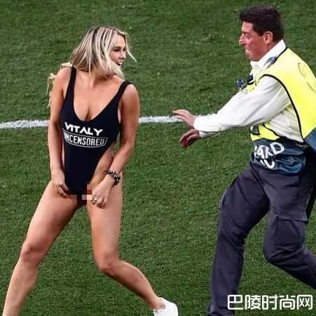 足球在欧洲总是能吸引数以千万计的粉丝,因此在想红想到疯的人眼里,正在进行冠军赛的球场是曝光最大、最容易的地方。沃兰斯姬为了帮俄美混血的网红男友打广告,不惜穿着黑色Y字高衩泳衣和白球鞋,从场边一路冲往球场中央,在全世界面前展现自己的丰胸、美臀和若隐若现的下体。