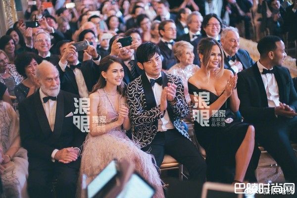 周杰伦身穿黑白西装、昆凌则穿银白色低胸礼服,从一开始就手牵手进场,在第一排落座后,仍握着彼此的手观看典礼,十分甜蜜。在2人旁边,还坐着美国巨星约翰传奇(John Legend)和其模特儿老婆克莉丝汀泰根(Christine Teigen),现场可说是星光熠熠。