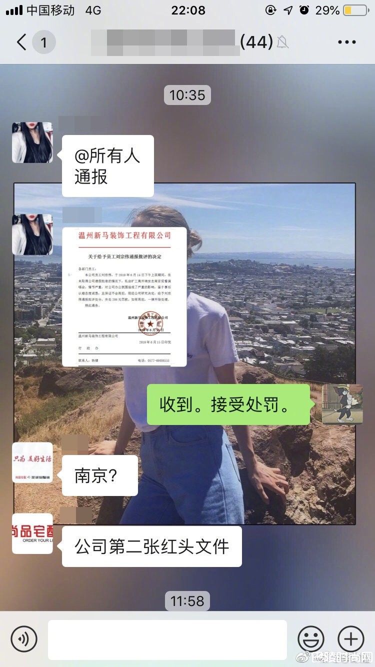 李荣浩15日晚间在微博发文,透露从同事那里收到2张图,得知有一位叫做刘姓粉丝为了看演唱会,擅自跷掉工作,结果被公司抓包。该公司发出处罚公告,明确写下旷工原因是去南京看演唱会,予以罚款,情节严重,对公司办公氛围造成了严重的影响,鉴于事后认错态度诚恳,且保证不会再犯,现经公司研究决定,给予通报批评处分,并处200元罚款。